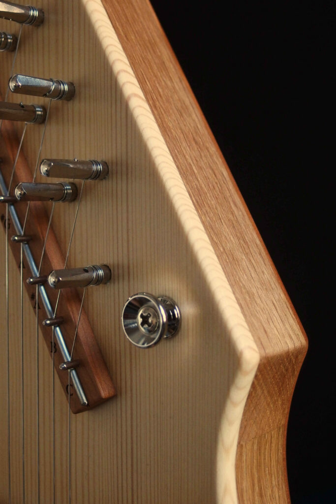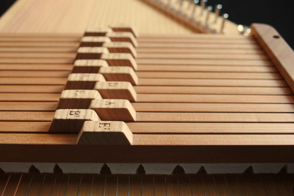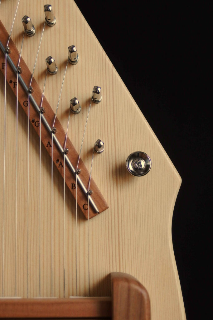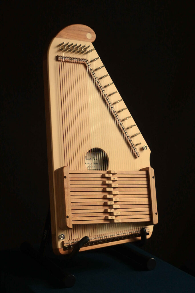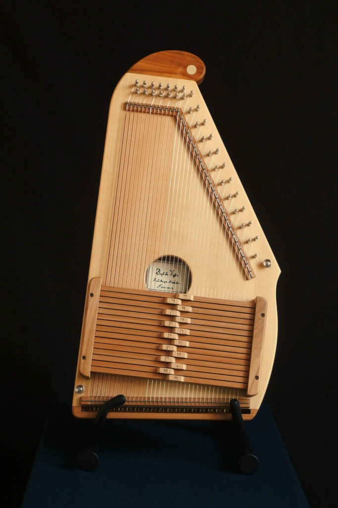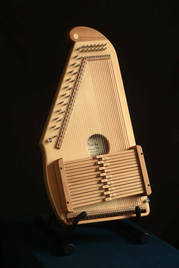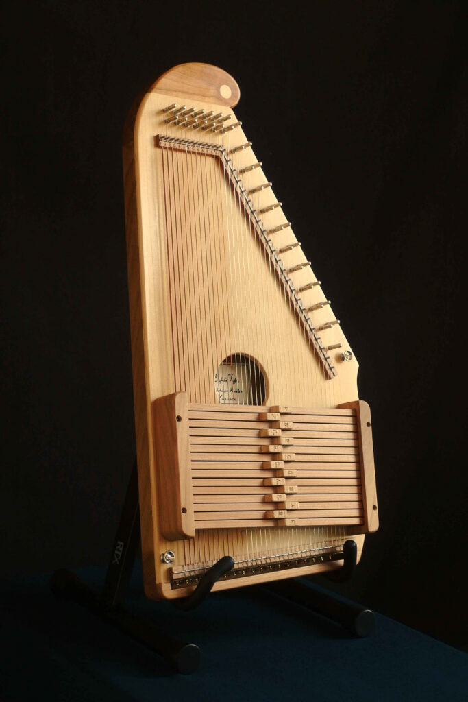 Modèle classique. La présence de barrages simples et l’utilisation de bois massif (épicéa du Jura pour la table, merisier pour le fond) lui confère un niveau sonore plus important que la plupart des autoharpes de série. L’instrument possède une bonne résonance et un bon équilibre entre les basses, les médiums et les aigus. L’utilisation de feutres de 8mm de haut rend le clavier souple pour un bon confort de jeu et sollicite moins le poignet. L’aspect esthétique est épuré avec le cadre en chêne massif apparent sur les bords de l’autoharpe.