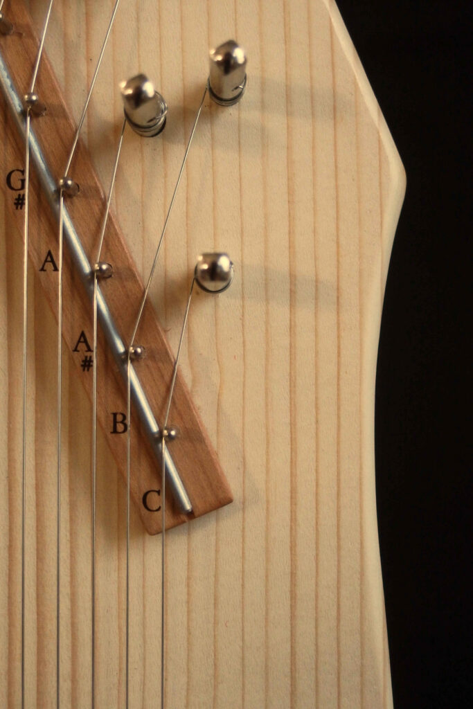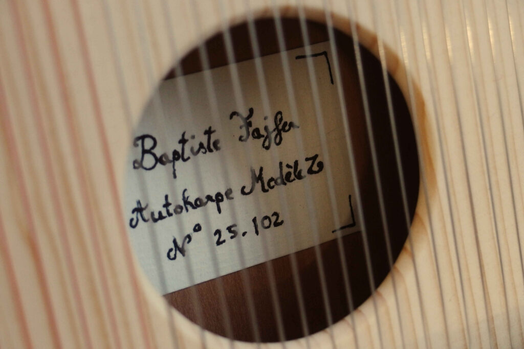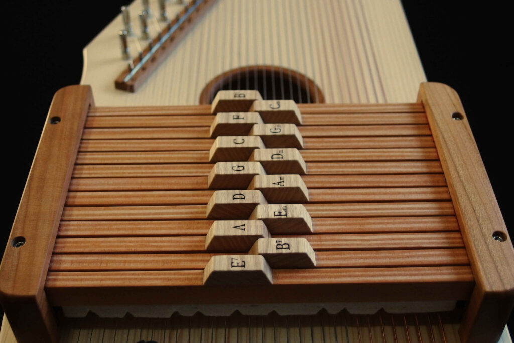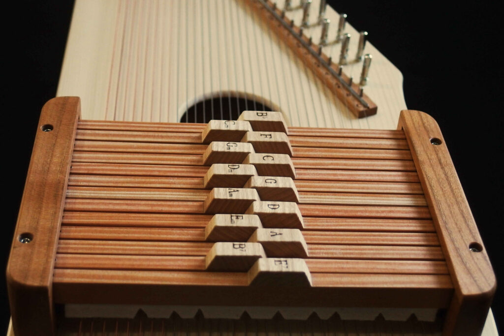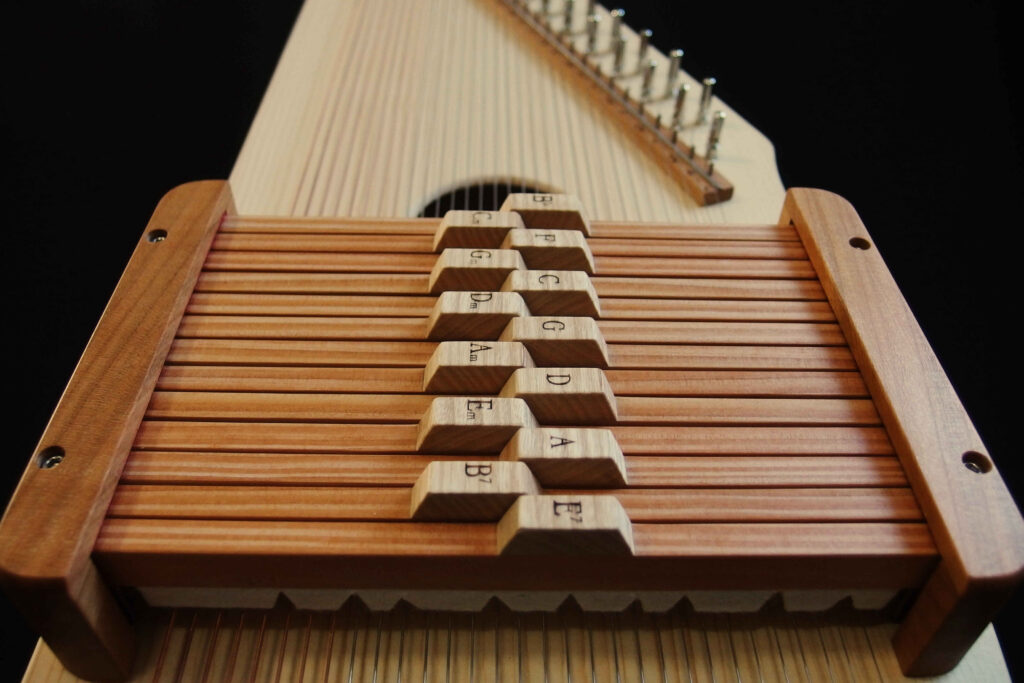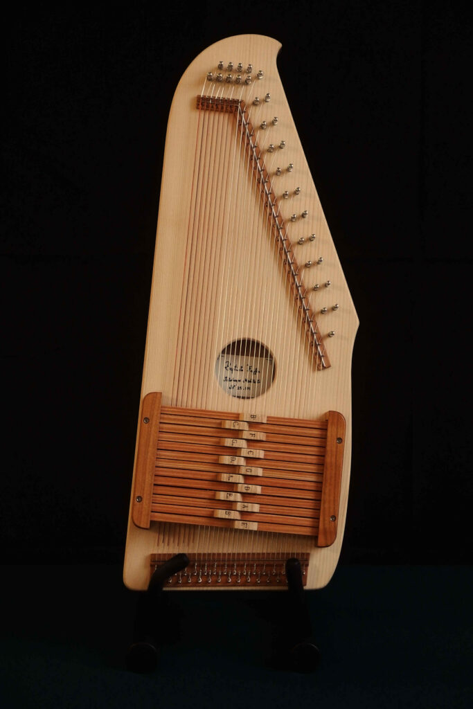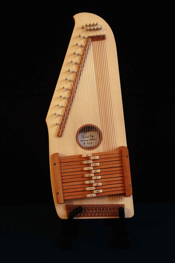 Il possède les mêmes notes que les autoharpes 36 cordes excepté les 5 basses. L’usage d’épicéa massif pour la table d’harmonie lui confère un bon volume sonore. Le son est clair et brillant.